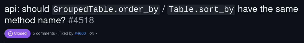 order_by or orderby or sort or sort_by or sortby?group_by or groupby or partition or partition_by or partitionby?🙏please only choose one🙏